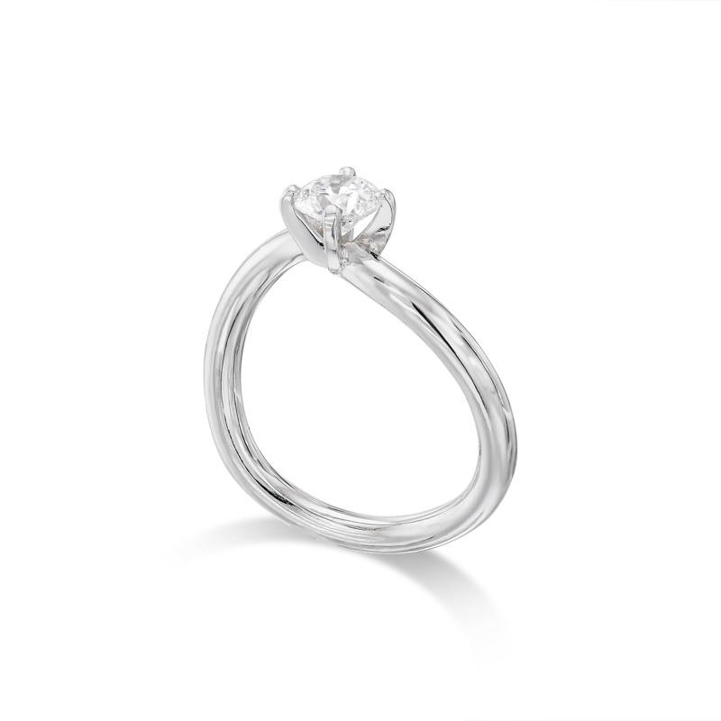 RTT20050 טבעת ארוסין- סוליטר לא סימטרית, משובצת יהלום מרכזי