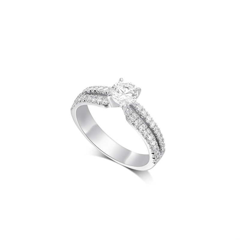 RT20097 טבעת ארוסין משובצת ביהלום מרכזי עם 2 שורות מצובצים ביהלומי צד