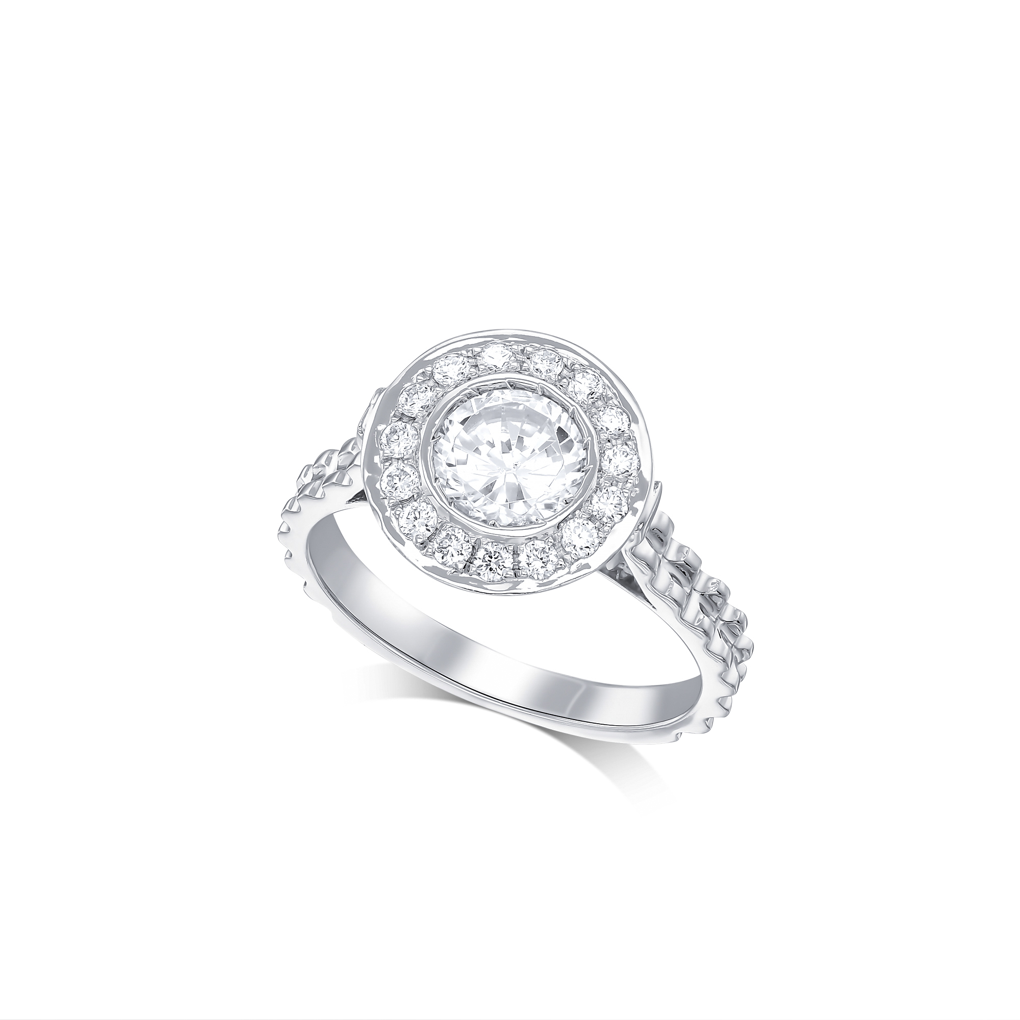 RT-20127 טבעת ארוסין -משובצת יהלום מרכזי ונסביב יהלומים זעירים למראה גדול של היהלום המרכזי- הטבעת משובצת גם ביהלומי צד