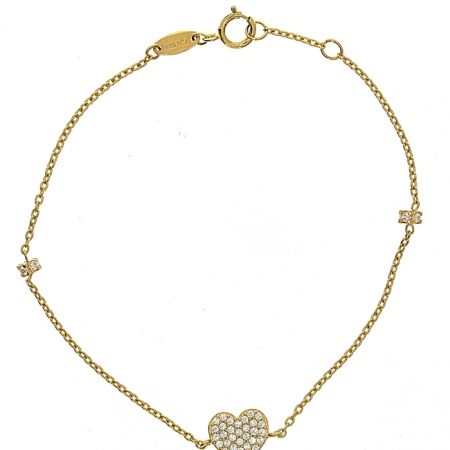 צמיד שרשרת לב משובץ 14K זהב