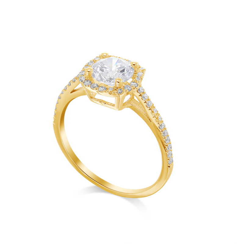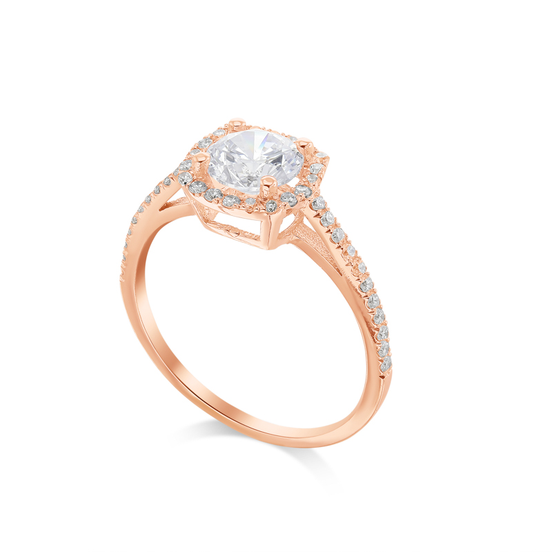 RT-20022 טבעת ארוסין סוליטר בצורת יהלום קושן עם יהלומי צד